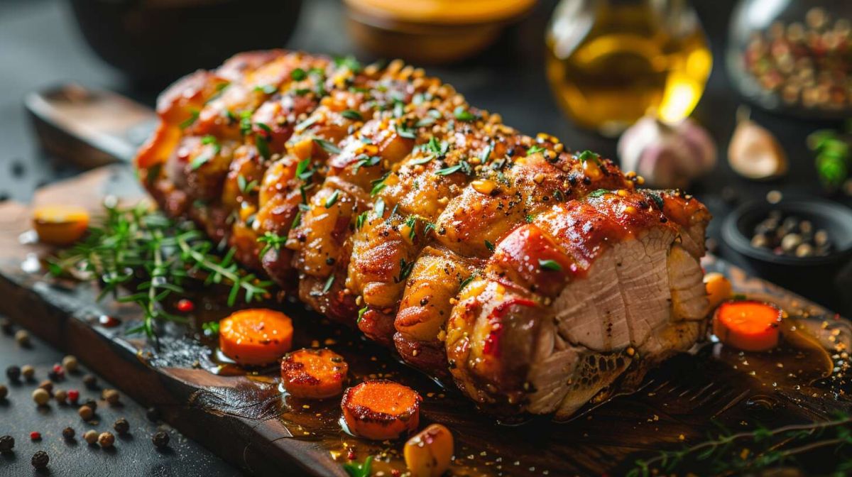 Originaire de la cuisine française, le rôti de porc est un classique souvent servi lors des repas en famille, apprécié pour sa versatilité et sa convivialité.