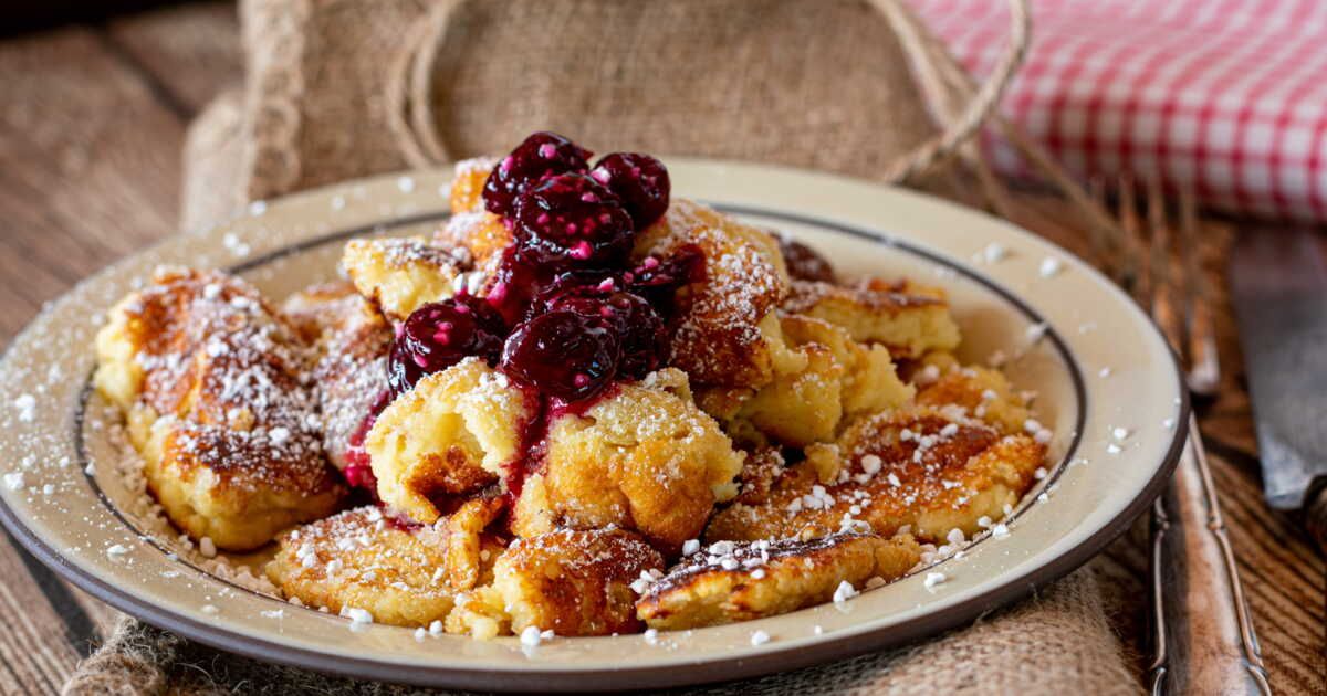 Les Kaiserschmarrn, également appelés beignets de l'Empereur, se présentent sous forme de crêpes épaissement déchirées en morceaux et saupoudrées de sucre glace. Servis avec une compote de fruits, ce dessert moelleux est irrésistiblement sucré.