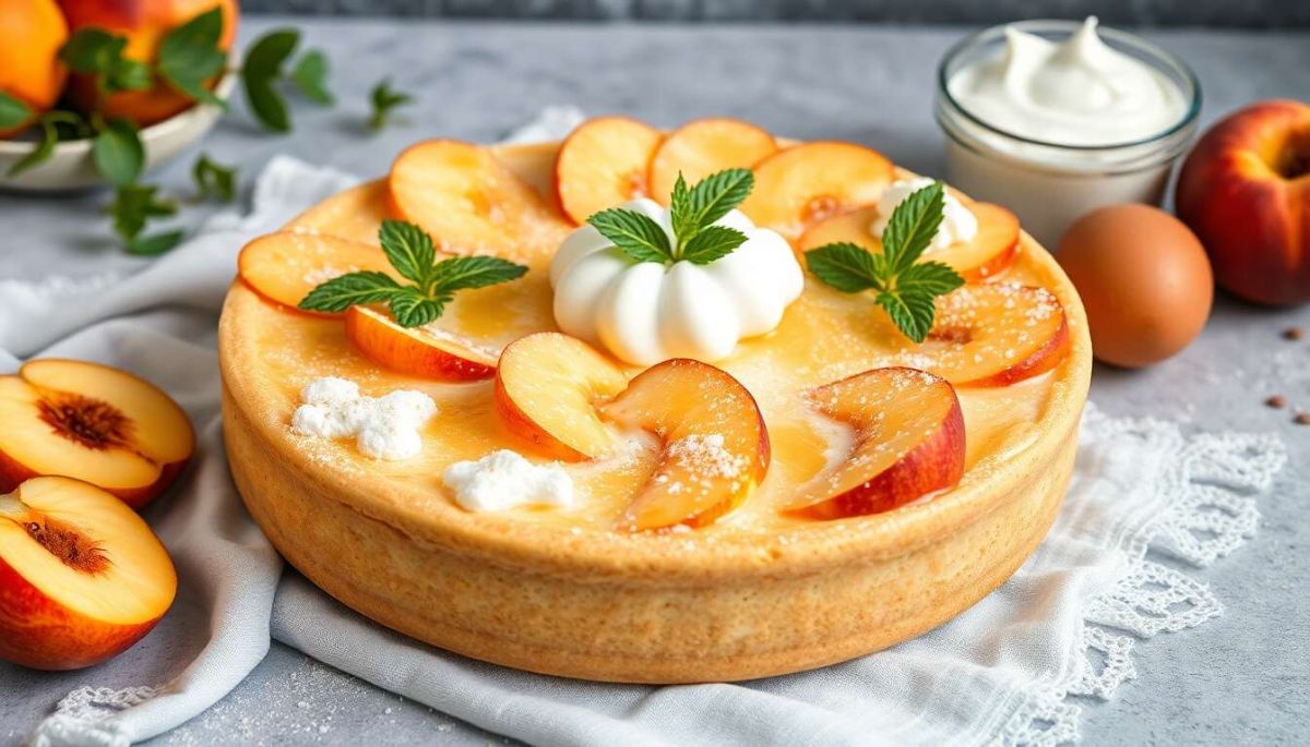 Égouttez les pêches, coupez-les en morceaux et ajoutez-les à la pâte.