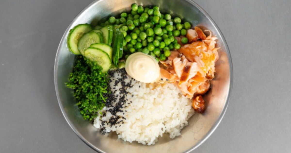 Cette recette, qui convient à deux personnes, demande quelques ingrédients simples : du riz cuit, du saumon mi-cuit, une salade de concombre et une bonne sauce piquante. Suivez ces étapes :