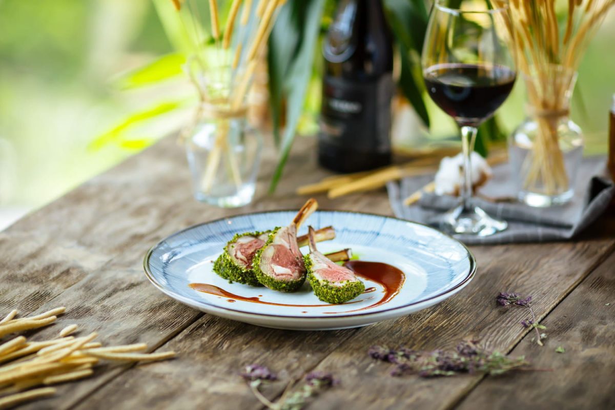 Préparation du carré d'agneau en croûte d'herbes