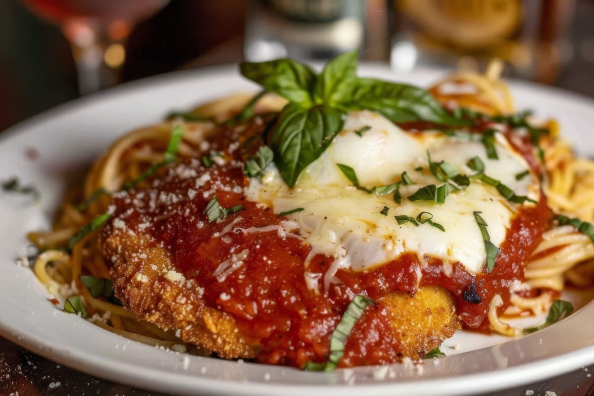 Une fois les aubergines pelées et essuyées, aplatissez-les doucement. Ensuite, panez-les en les trempant dans de la farine, des œufs battus, et de la chapelure avant de les dorer à la poêle dans un généreux filet d'huile de tournesol. En accompagnement, concoctez des linguine à la sauce tomate maison, réalisée en faisant réduire ail, oignon, pulpe de tomate et basilic pendant une heure.